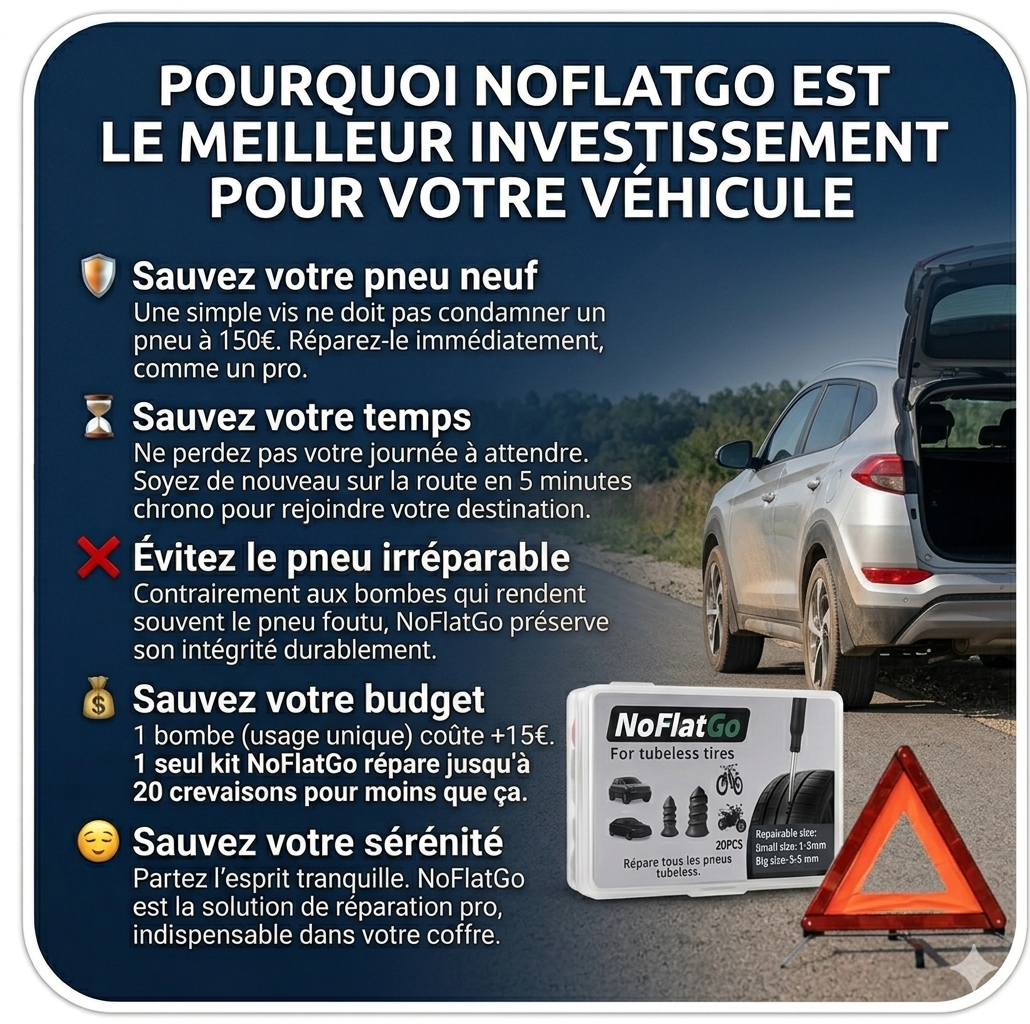 "J'ai eu une crevaison sur l'A6, j'ai utilisé ce kit en 5 minutes et j'ai pu continuer ma route mieu qu'une bombe crevaison"