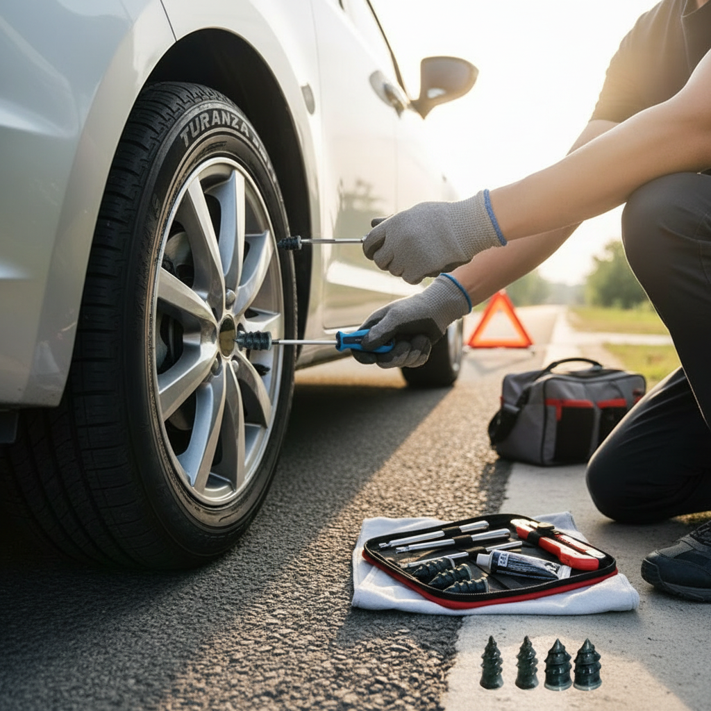 Un kit complet tout-en-un compatible avec tous les véhicules à pneu tubeless.